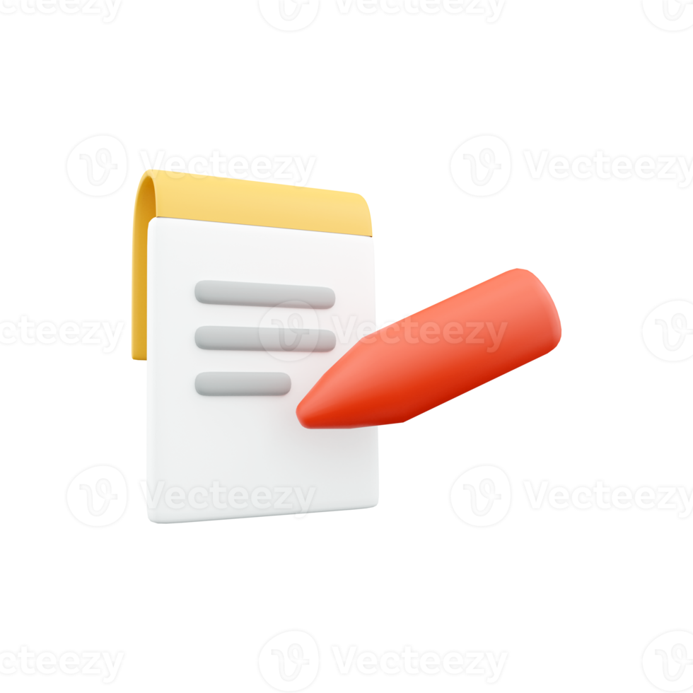 3d render bastão Nota com caneta. 3d Renderização bastão Nota em branco fundo. 3d Renderização bastão Nota com caneta ilustração. PNG Pro