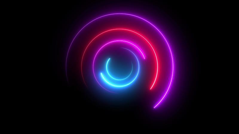 animação de néon de loop brilhante. girar o elemento abstrato de rotação geométrica. anel de laser de movimento dinâmico de feixe de luz, movimento de eclipse redondo equilíbrio de energia espaço gráfico efeito de partícula de forma azul e roxa Vídeo Grátis