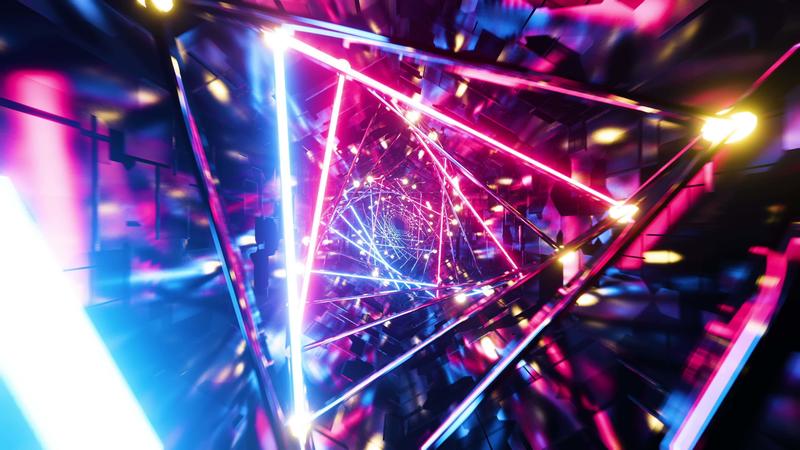 gráfico de movimento de voar no túnel digital do triângulo de rotação. animação infinitamente em loop. Vídeo Pro