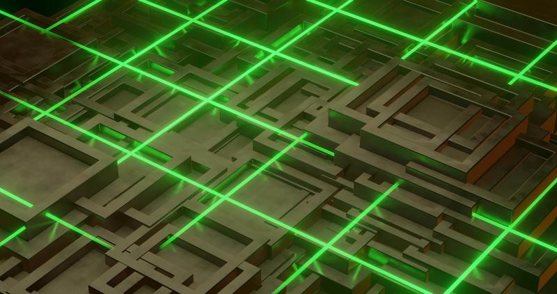 fundo abstrato usando um padrão de cubo geométrico com uma textura metálica com linhas móveis em verde neon, renderização em 3d e tamanho 4k Vídeo Pro