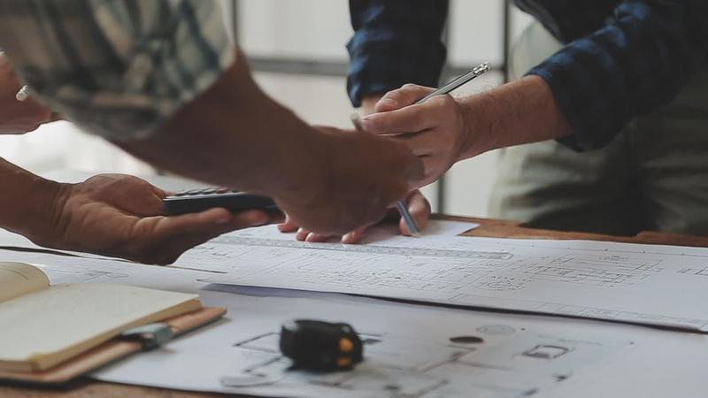 conceito de construção e estrutura de reunião de engenheiro ou arquiteto para projeto trabalhando com parceiros e ferramentas de engenharia na construção de modelo e projeto no local de trabalho, contrato para ambas as empresas. Vídeo Grátis