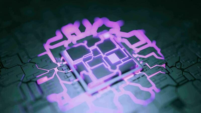 looping CPU lasca fundo. colorida néon linhas rede. microchip gpu Vídeo Grátis