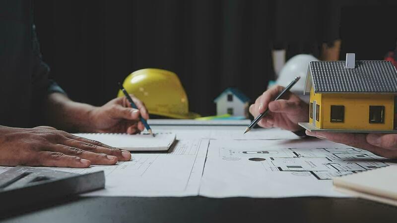 construção e estrutura conceito do engenheiro trabalhando desenhando em projeto encontro para projeto trabalhando com parceiro em modelo construção e Engenharia Ferramentas dentro trabalhando site, construção conceito. Vídeo Pro