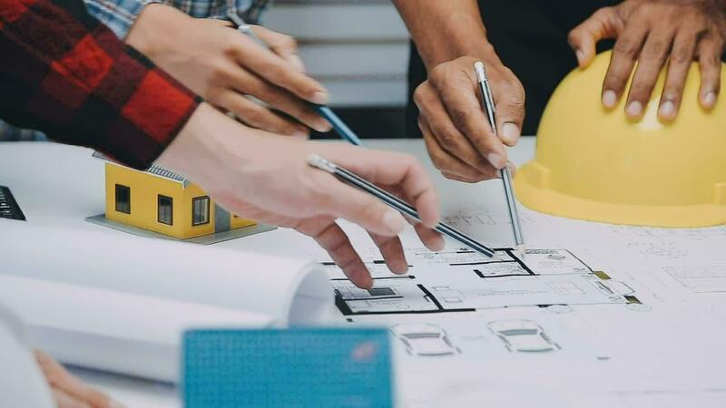 construção e estrutura conceito do engenheiro trabalhando desenhando em projeto encontro para projeto trabalhando com parceiro em modelo construção e Engenharia Ferramentas dentro trabalhando site, construção conceito. Vídeo Grátis