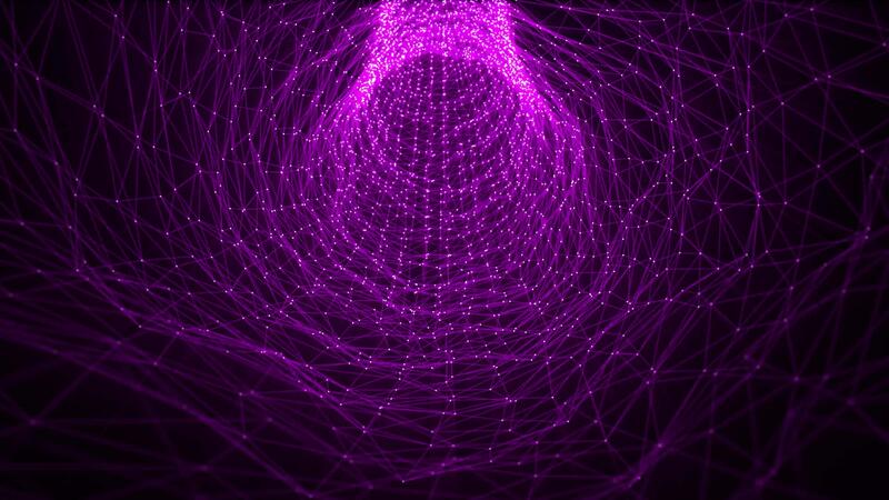 em loop animação do abstrato Rosa roxa túnel fez do oi-tech plexo do linhas e pontos com brilho efeito em uma Sombrio fundo , em loop vídeo, 4k , 60. fps Vídeo Pro