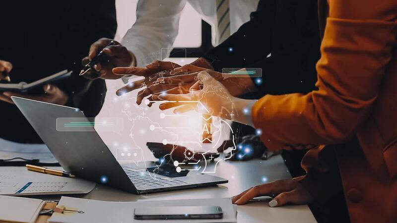 ai tecnologia, homem de negocios mostrar virtual gráfico global Internet conectar chatbot bate-papo com ai, artificial inteligência. usando comando pronto para gera algo, futurista tecnologia transformação. Vídeo Grátis