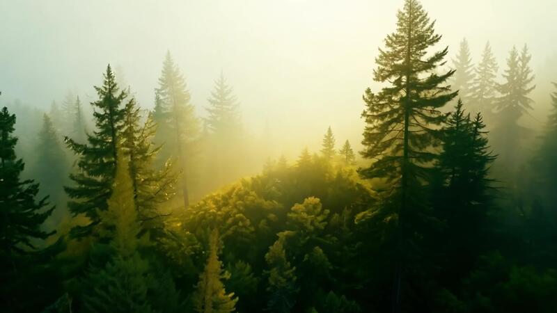 uma sereno floresta com uma enevoado manhã névoa. macio, difuso iluminação para crio uma místico atmosfera. Vídeo Grátis