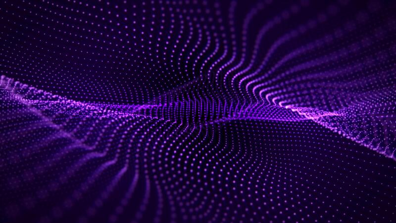 em loop forma de onda fundo com flutuando estrutura do partículas e suave Rosa roxa brilho efeito. abstrato animação do pontilhado ondas para Ciência ficção, virtual realidade e tecnologia. ciclo 4k 60. fps Vídeo Pro