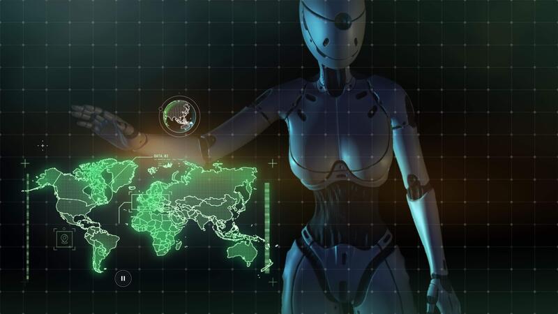 andróide trabalho com mapas em uma virtual painel. Vídeo Pro