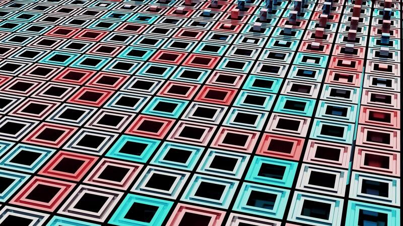 abstrato colorida superfície com quadrado em forma buracos e crescendo pilares a partir de cada do eles. Projeto. 3d textura com colorida retângulos. Vídeo Pro