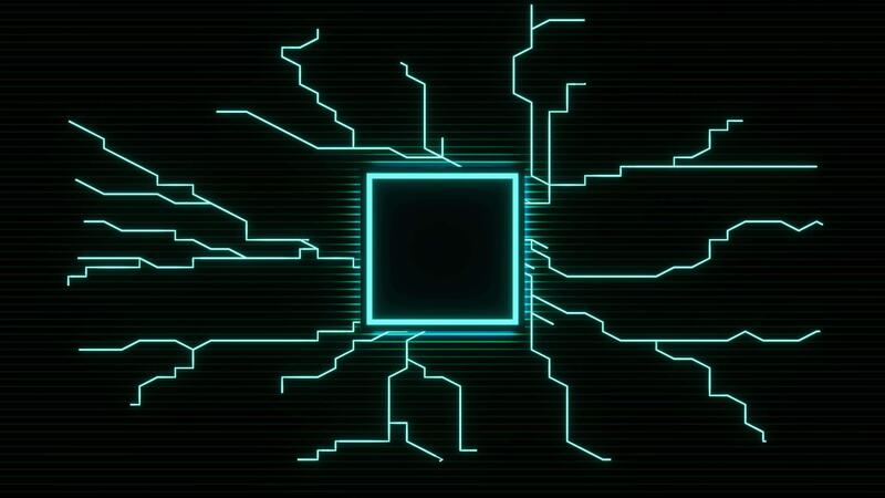 futurista CPU computador processador em o circuito borda com néon luz ciclo fundo Vídeo Pro