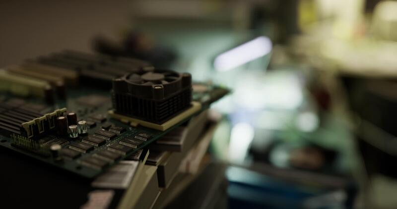 fechar acima do uma computador placa mãe com componentes em uma bancada Vídeo Pro