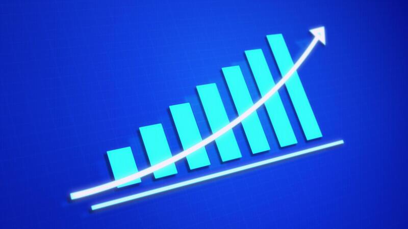 animado gráfico Barra e seta acima com azul fundo, o negócio gráfico animação é adequado para empregado desempenho apresentação, o negócio crescimento, e vendas Estatisticas. Vídeo Pro