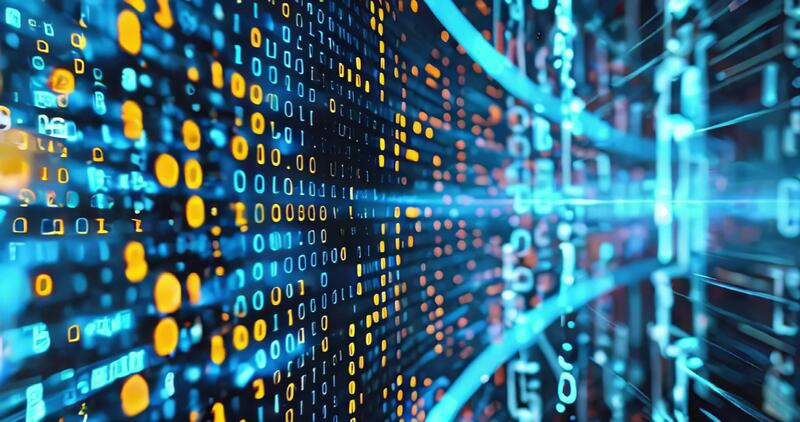 matriz números do binário código em uma digital tela, em formação tecnologia, artificial inteligência, programação Vídeo Grátis