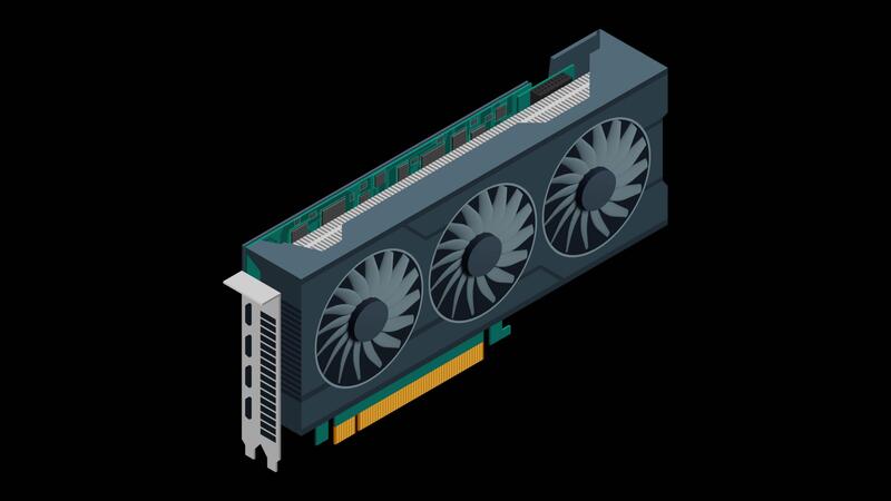 isométrico gráfico cartão animação. cartão isométrico. computador hardware componentes. gpu gráfico cartão 4k animação. transparente fundo com alfa canal Vídeo Pro