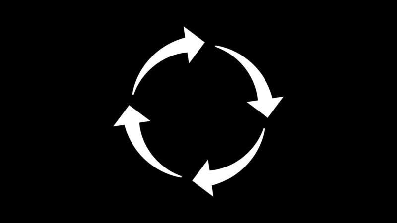 looping rotação animação do quatro branco, vermelho, Preto Setas; flechas formando uma circular ciclo em transparente fundo com alfa canal, desatado movimento gráfico para interface, carregando, processo Vídeo Pro