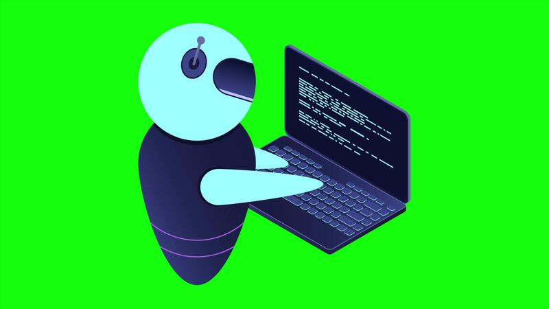 futurista robô interação com computador animação. isométrico ai robô. digital comunicação chatbots. isométrico tecnologia. 4k animado dentro isométrico estilo Vídeo Pro