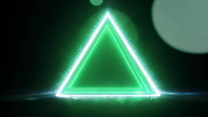 brilhando verde triângulo luz forma com brilhos e bokeh efeitos Vídeo Pro