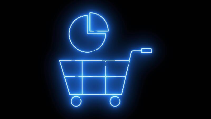 carrinho ícone e torta gráfico ícone com néon efeito Vídeo Grátis