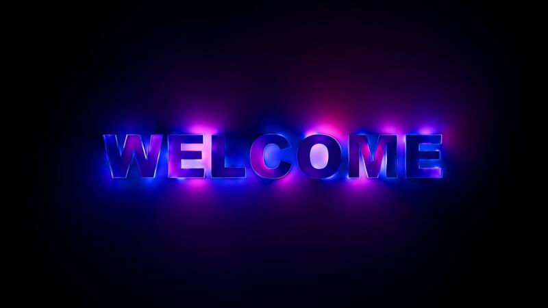 néon bem-vinda texto ciclo com futurista brilhando gradiente iluminação. em loop animação. 3d Renderização Vídeo Pro
