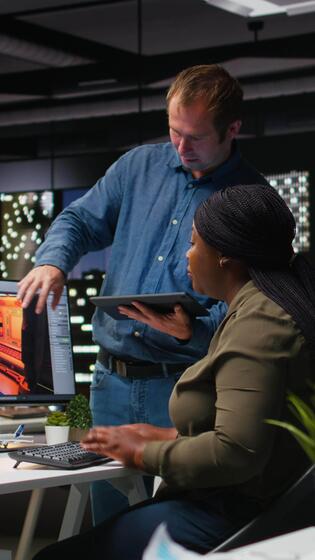 vertical equipe do especializado engenheiros criando Marte Sediada virtual estação usando turbina em ai interface. futurista programa em processamento dados com profundo Aprendendo e automação para jogos otimização. Câmera uma. Vídeo Pro