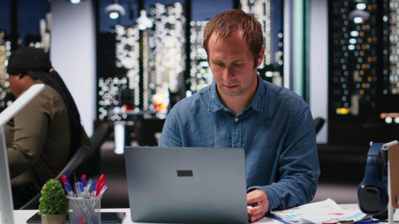o negócio Gerente dentro moderno local de trabalho partilha intuições e relatórios, concentrando em dados visualização para eficiente recurso alocação. bem sucedido companhia administração e gerenciamento. Câmera b. Vídeo Pro